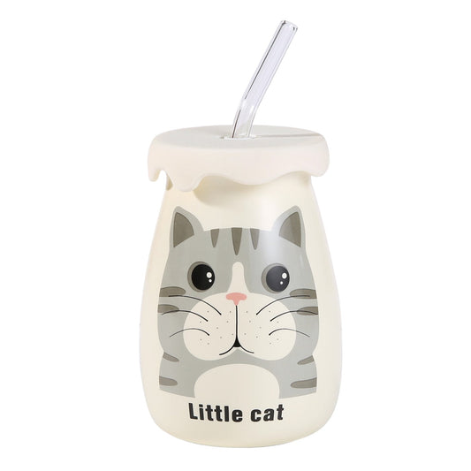 Gray Tabby Cat 14oz Mug With Lid and Straw