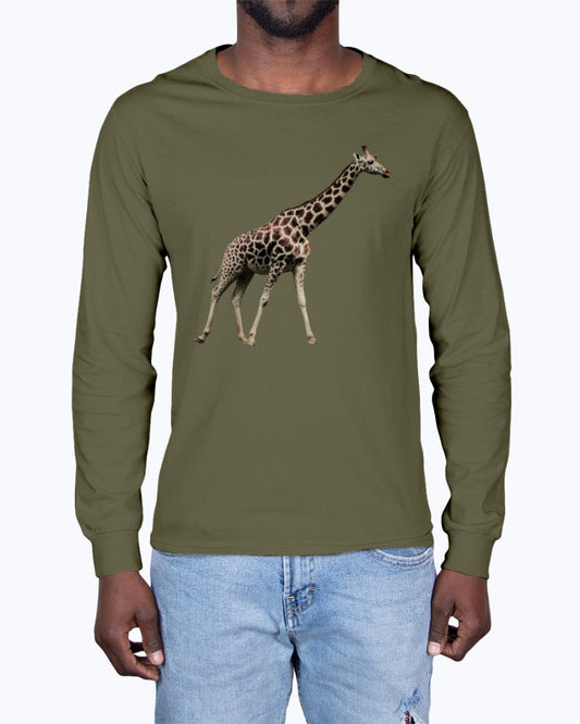 Giraffe's stride, Moss Apparel, Animal Lover Gift, Nature, Unisex Casual Wear, Wild Animal, Unisex Long Sleeve T-Shirt