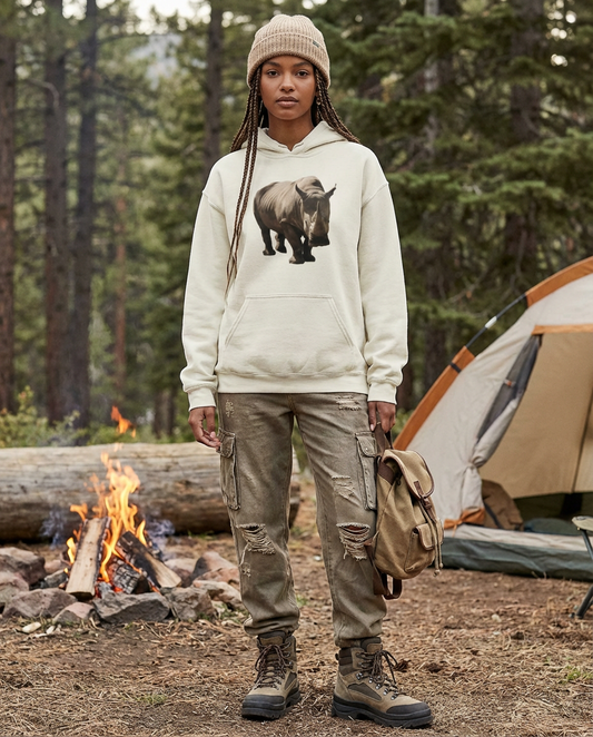 Stylish Rhino Hoodie, Moss Apparel, Cozy Animal Sweatshirt, Wildlife Apparel, Gift for Nature Lovers, Eco-Friendly Fashion Hoodie