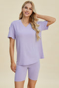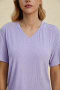Basic Bae Full Size Ribbed V-Neck Short Sleeve Top and Shorts Set