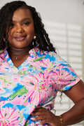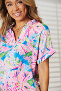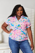 Double Take Women's Floral Notched Neck Short Sleeve Top