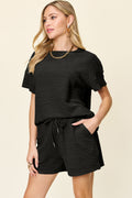 Double Take Texture Short Sleeve T-Shirt and Drawstring Shorts Set