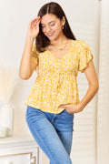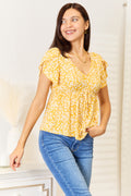 The floral petal sleeve babydoll top is a feminine and elegant choice for your wardrobe. With its delicate floral print and petal sleeves, it exudes a romantic and whimsical vibe. The babydoll silhouette adds a flattering and flowy touch, making it perfect for a stylish and comfortable look. This top can be dressed up with a skirt or dressed down with jeans, making it versatile for various occasions.