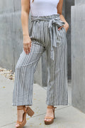 Heimish Find Your Path Full Size Paperbag Waist Striped Culotte Pants