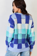 J.NNA Checkered Round Neck Long Sleeve Sweater