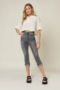 Judy Blue Full Size Button Fly High Waist Cuffed Capris