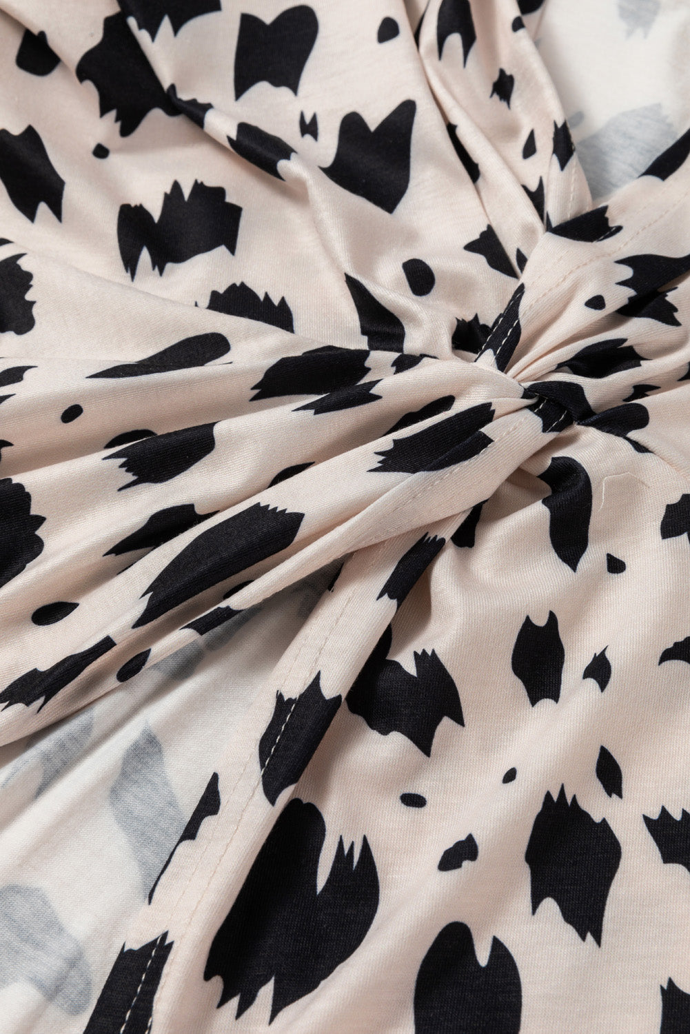 Show off your wild side with this leopard print tee. A trendy twist knot detail adds a bit of charm while the fit is perfect for curvy fashionistas.