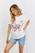 Everyone needs at least one graphic tee in their wardrobe! A simple graphic tee with a cute floral butterfly design! This top can be paired with jeans or shorts for a casual outfit