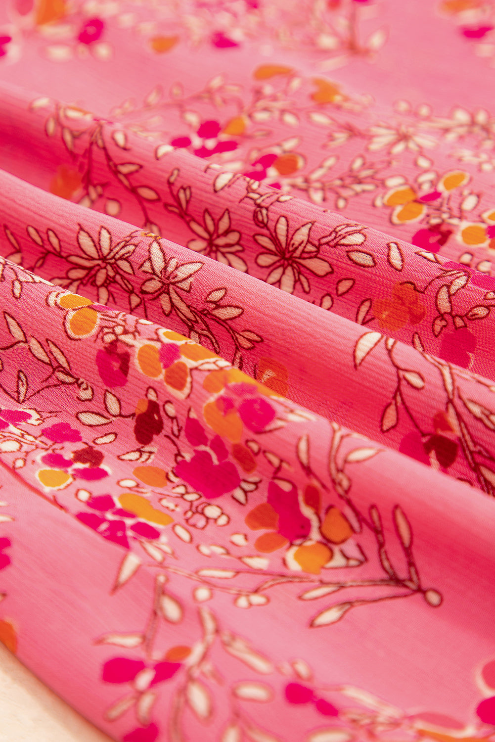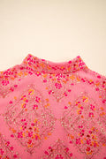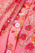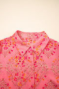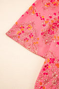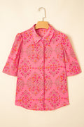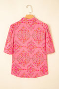 Rose Red Floral Print Wide Short Sleeve Loose Shirt