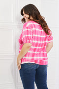 Yelete Full Size Oversized Fit V-Neck Striped Top